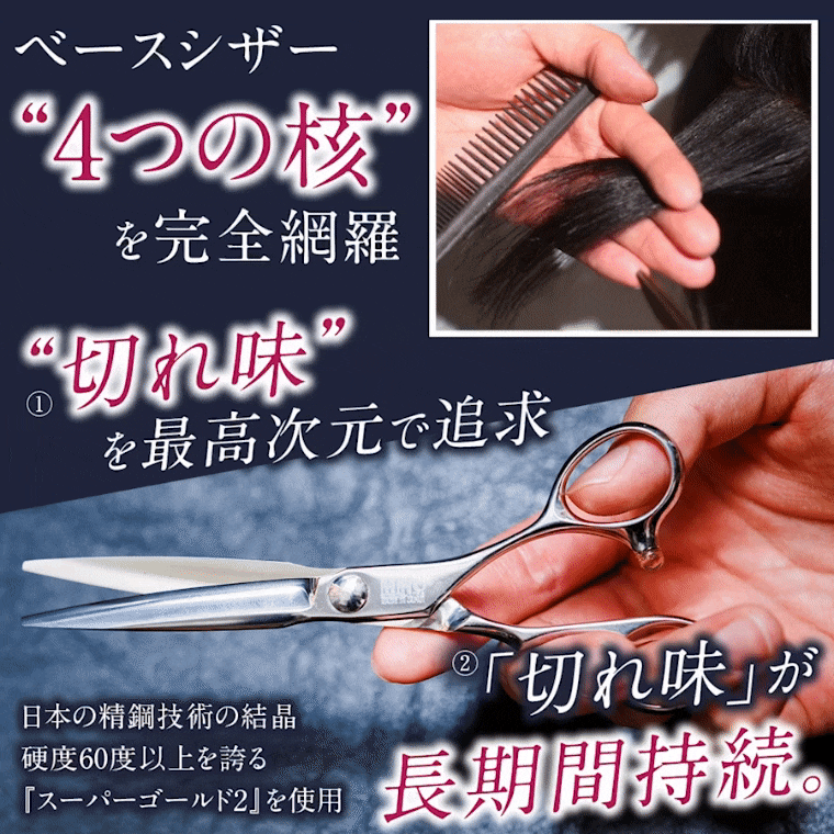 シザー職人の加工技術によって滑らかに髪に刃が入り滑りが少なく高い耐久性も併せ持っています。